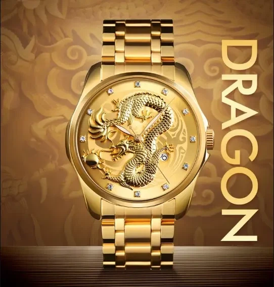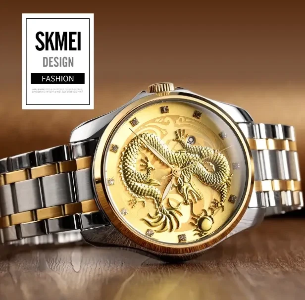 Годинник SKMEI Золотий Дракон водонепроникний у подарунковому боксі