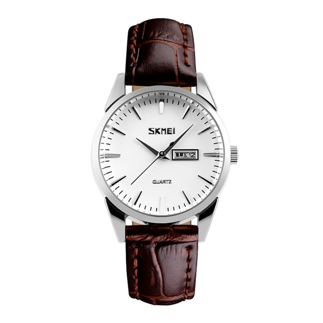 Годинники Skmei жіночі стрілочні кварцові сріблясті зі шкіряним ремінцем для повсякденного носіння (547480)