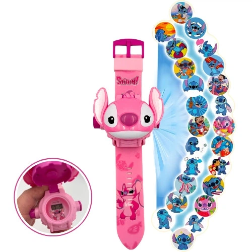 Дитячий годинник із 3D-проєктором 24 зображення Стіч рожевий - Stitch