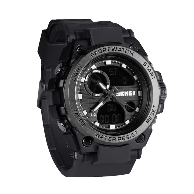 Skmei годинник спортивний чорний з золотим будильник календар секундомір для чоловіків електронні (547708)