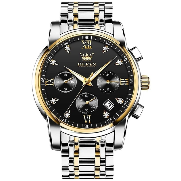 Годинник чоловічий Olevs 2858 Black Accents кварцовий із трьома циферблатами, бізнес-класика з датою (ol2858ba)