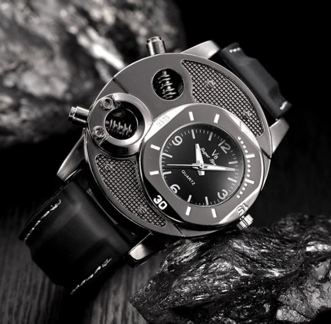 Великий чоловічий наручний годинник кварцовий з силіконовим ремінцем чорний