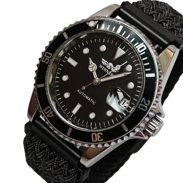 Чоловічий Наручний Годинник Winner Basel Nylon Сріблястий Механічний Мінеральне Скло Winner (364712)