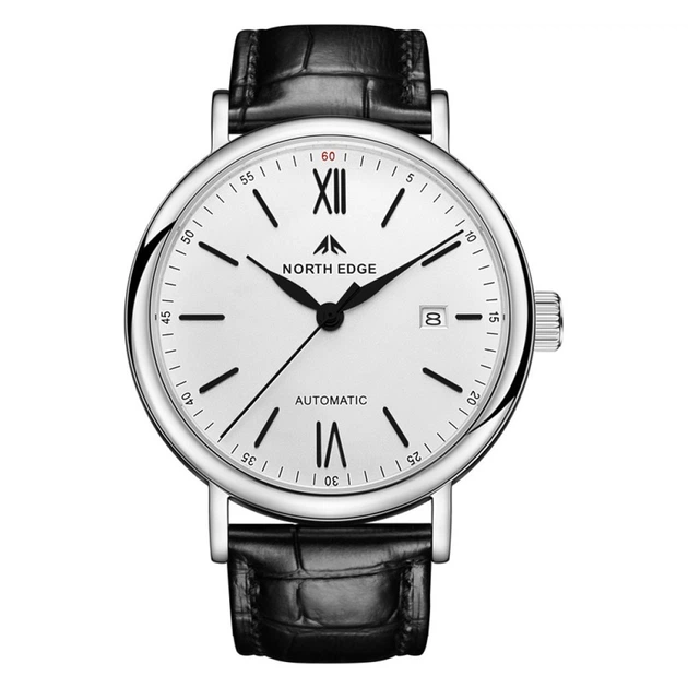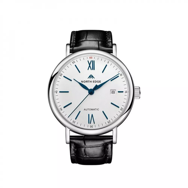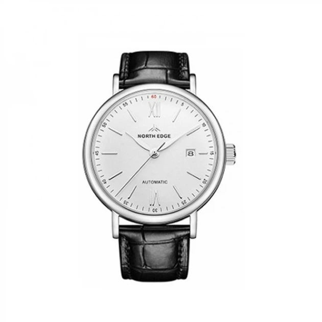 Механічний Наручний Годинник з Автопідзаводом NORTH EDGE AMOY |Шкіра, Сапфір, 316L, 50м| Срібні