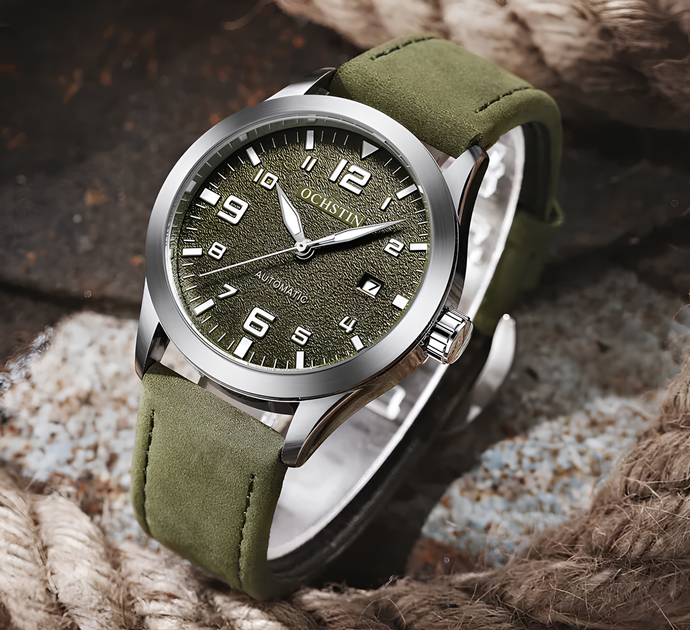 Чоловічий механічний годинник Ochstin водонепроникний з ремінцем Хакі