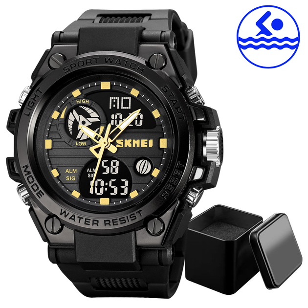 Годинник Skmei водонепроникний чорний із золотом для чоловіків спортивний електронний з будильником і таймером (547081)