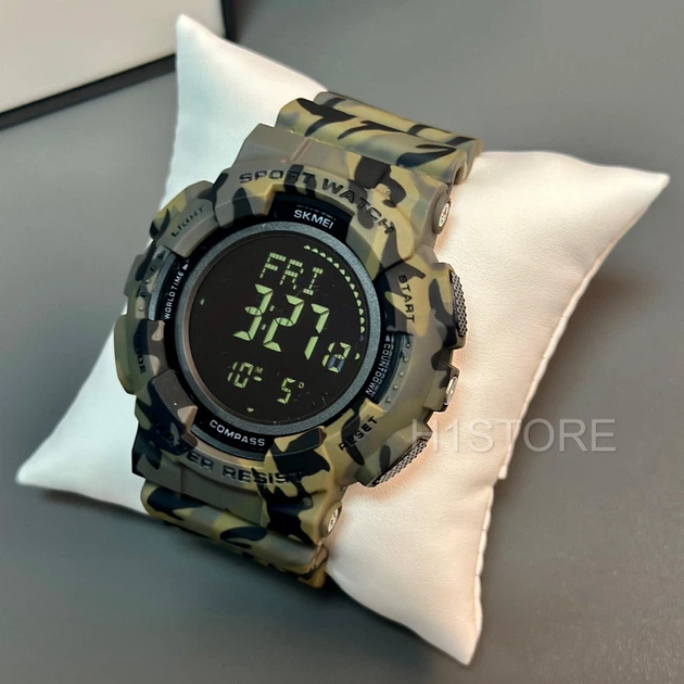 Годинник наручний спортивний SKMEI 1968 Green Camo зелений камуфляж водостійкий електронний