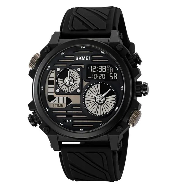 Годинник чоловічий спортивний наручний Skmei 2202 (Чорний силіконовий ремінець)