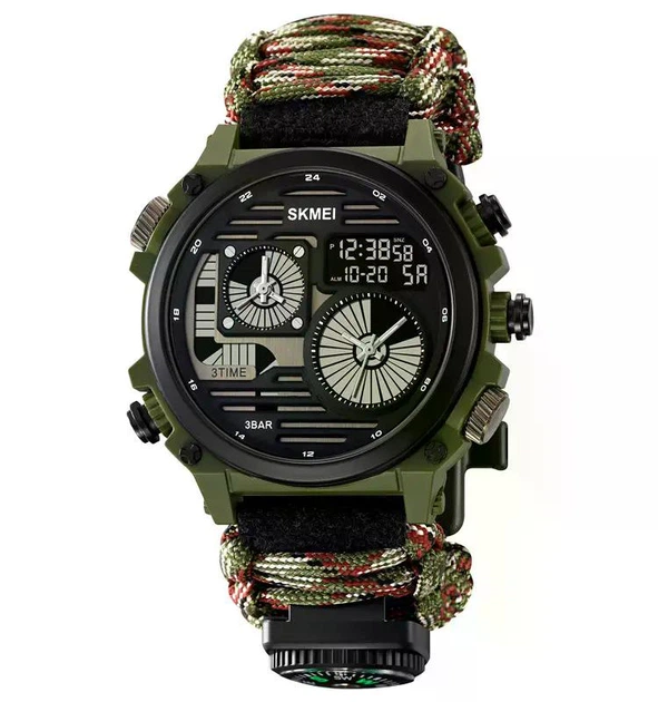 Спортивний годинник Skmei 2202 чоловічий зелений/нейлоновий ремінець паракордом камуфляж