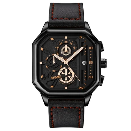 Годинники Skmei 1963BKRG чорні зі шкіряним ремінцем кварцові чоловічі для повсякденного використання стильні (547324)