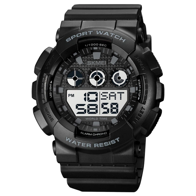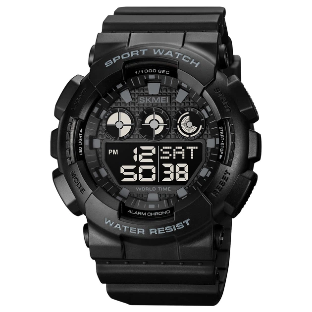 Годинник Skmei 1856BKWT Чоловічий водонепроникний електронний з будильником і секундоміром чорний (547198)