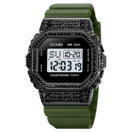 Годинники Skmei 2000AG армійські зелені електронні чоловічі з будильником та календарем для повсякденного використання (5474
