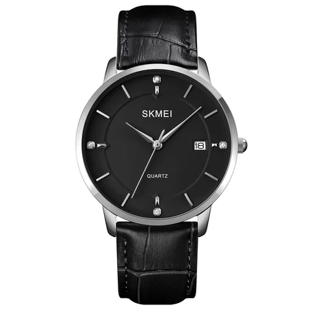 Годинник наручний кварцевий з датою SKMEI 1801LSIBK Silver-Black Leather чорний