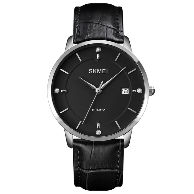 Годинник Skmei 1801LSIBK сріблясті чорні шкіряні чоловічі класичні з календарем та водонепроникністю 30 м (547271)