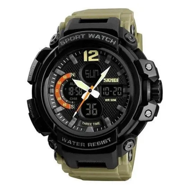 Чоловічий наручний годинник з підсвічуванням Skmei 1343 Чорний із зеленим ременем (койот)