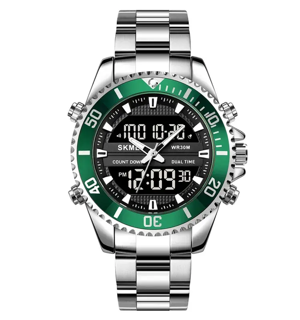 Чоловічий наручний годинник Skmei 1850 Срібний з зеленим