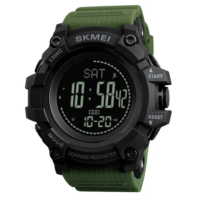 Чоловічий спортивний годинник з компасом Skmei 1356 чорний, зелений ремінець