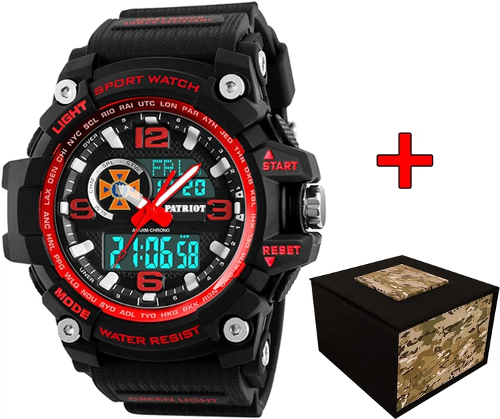 Чоловічий годинник Patriot 012BKRDDSNS ДСНС Чорний з червоним + Коробка