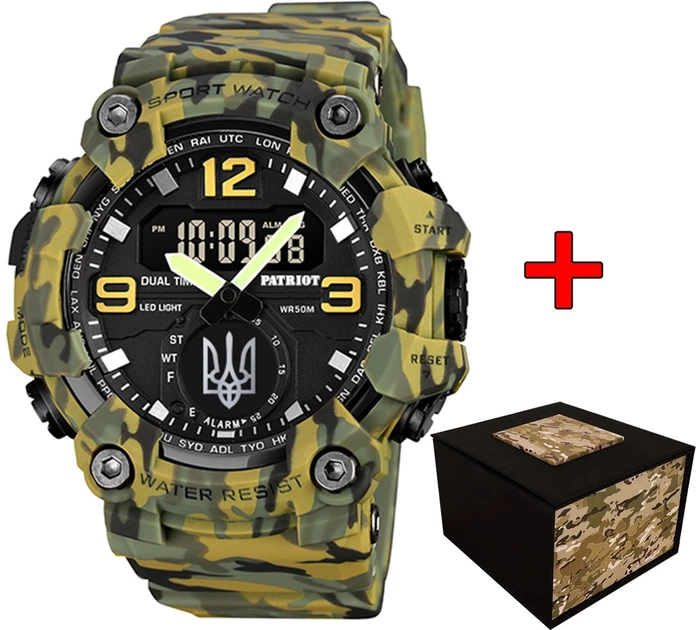 Наручний годинник Patriot 003CMGRUASI Тризуб срібло Зелений камуфляж + Коробка. Store