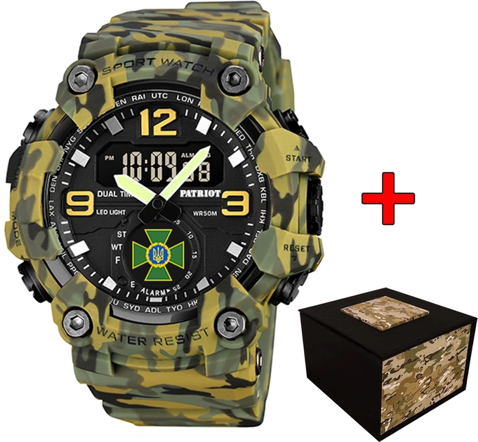 Чоловічий годинник Patriot 003CMGRDPS ДПС Зелений камуфляж + Коробка