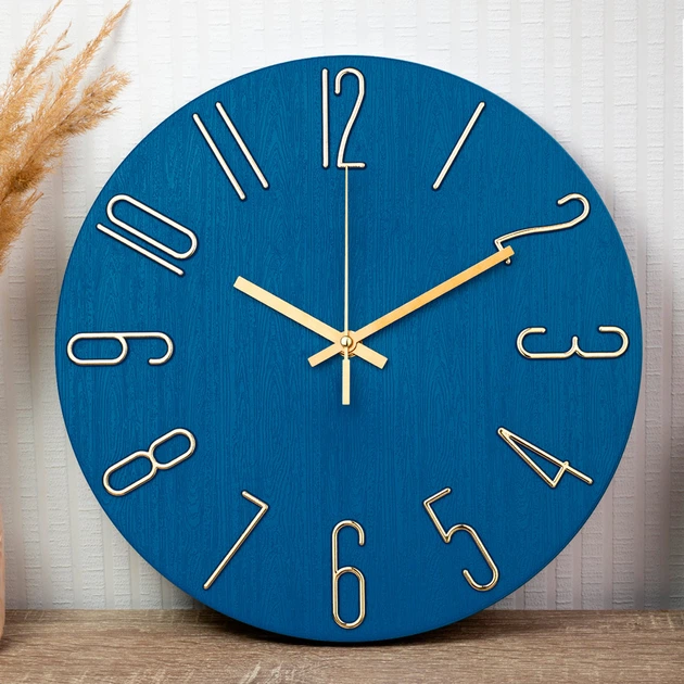 Годинник настінний безшумний Losso Premium MODERN CM-30 синій (золоті цифри)