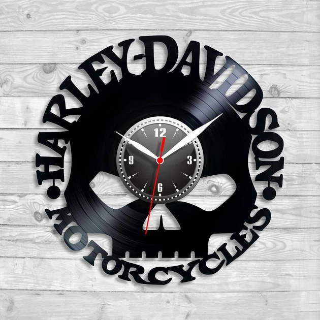 Настінні годинники Вінілова платівка Харлі Девідсон 30 см 709/3 Чорний