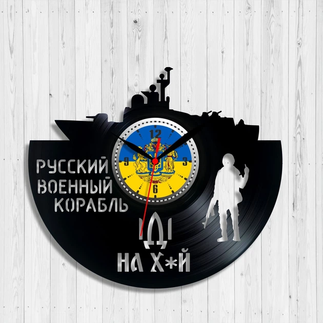 Годинники настінні Вінілова пластинка Російський військовий жолоб іди на 30 см Чорний 1413/4