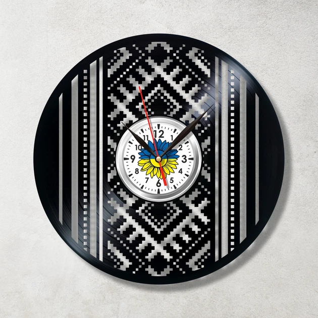 Годинники настінні Вінілова платівка Годинники України Герої не вмирають вмирають вороги 30 см Чорний 1421/1