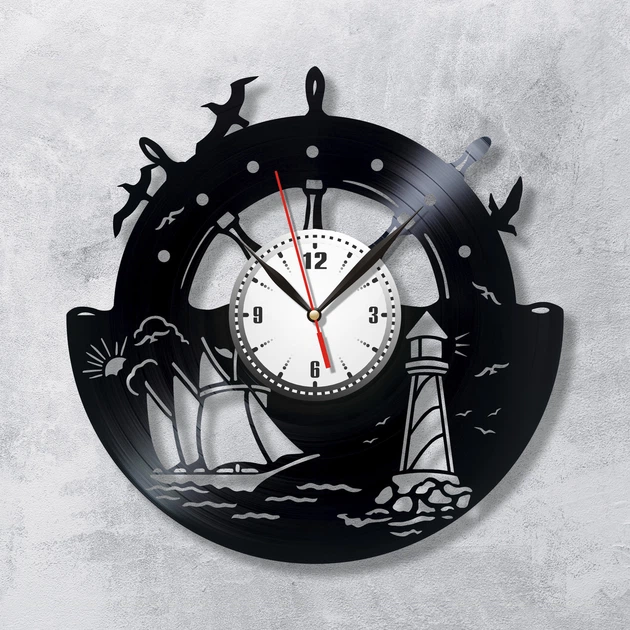 Настінні годинники Вінілова пластинка Корабель 30 см 587/1 Чорний