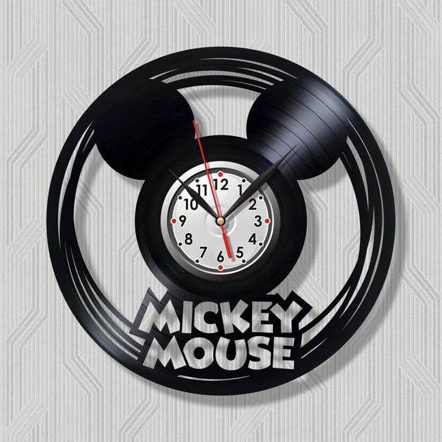 Годинник настінний Вінілова платівка Міккі Маус 30 см Чорний 2086/3