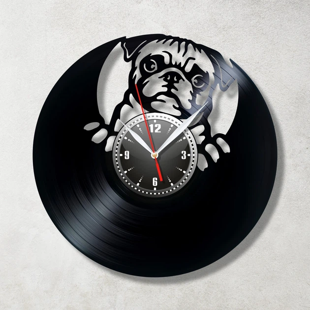 Годинник настінний Вінілова платівка Мопс 30 см Чорний 2108/1