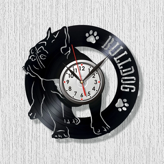 Настінний годинник Вінілова пластинка Французький Бульдог 30 см 1402/3 Чорний