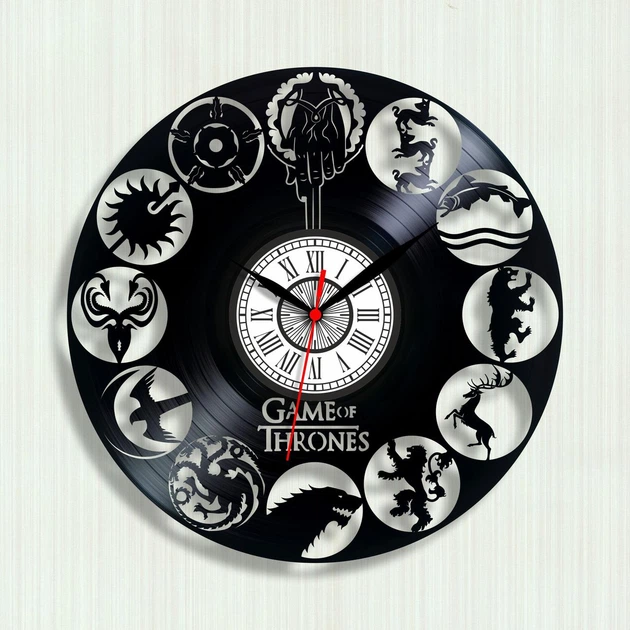 Годинники настінні Вінілова платівка Гра Престолів 30 см Чорний 148