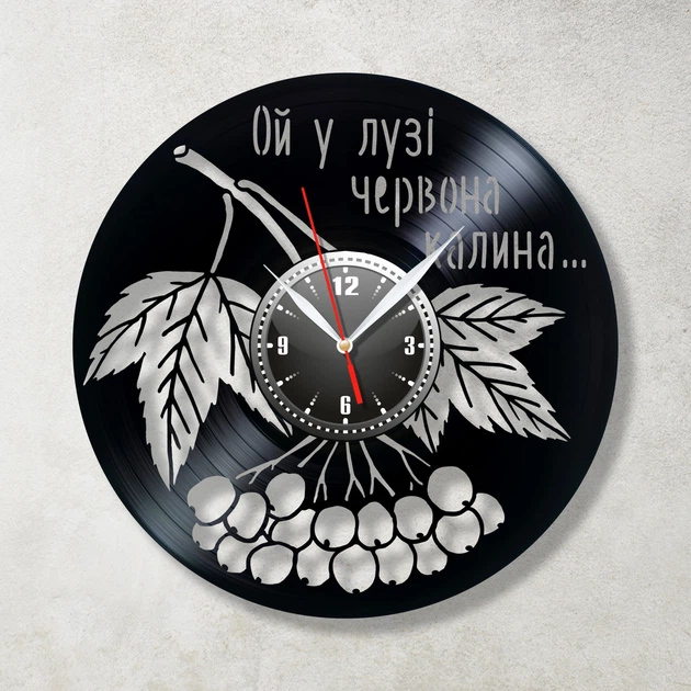 Годинник настінний Вінілова платівка Ой у лузі червона калина 30 см Чорний 1461/1