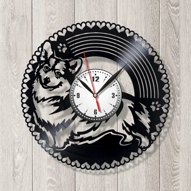 Настінні годинники Вінілова пластинка Собака Корги 30 см 1271/3 Чорний