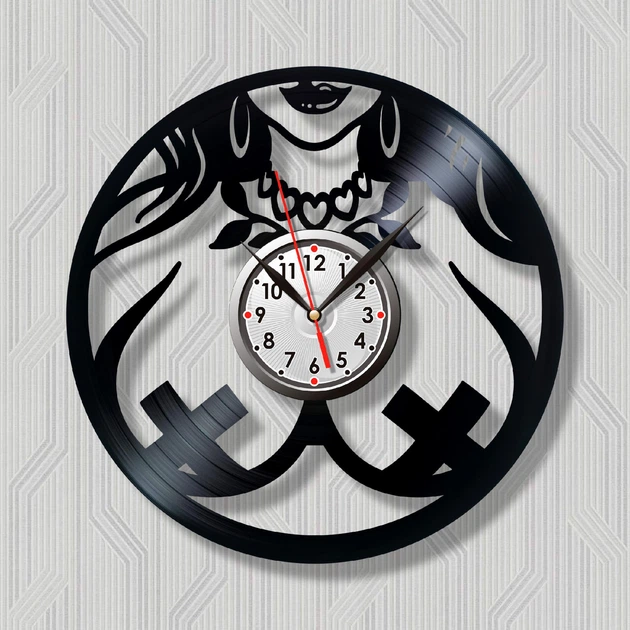 Годинник настінний Вінілова платівка Большая женская грудь 30 см Чорний 100157/3