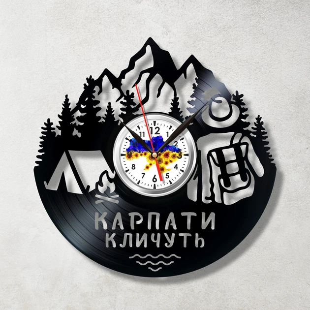 Годинник настінний Вінілова платівка Карпати Кличуть 30 см Чорний 1488/3