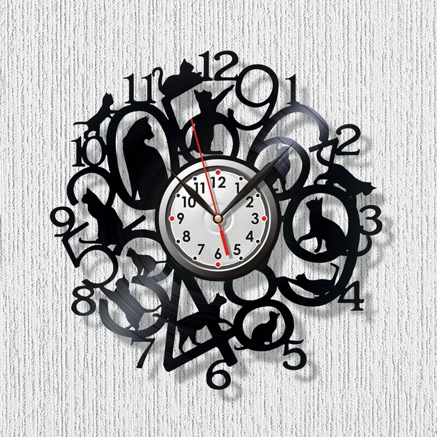 Настінні годинники Вінілова пластинка Коти 30 см1116/1 Чорний