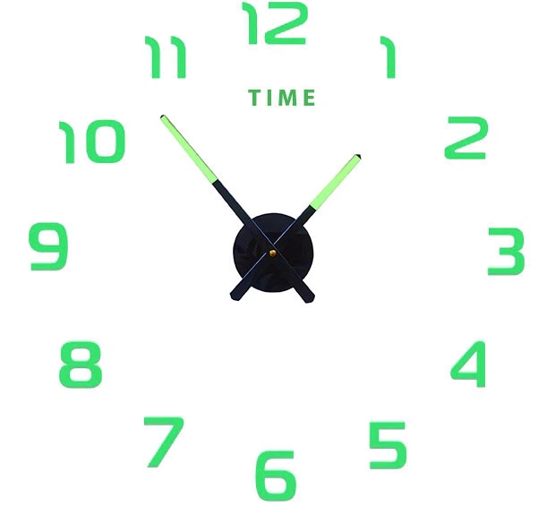 Настінний об'ємний 3D годинник великий 90см світиться в темряві з цифрами колір салатовий зроби сам (6529)