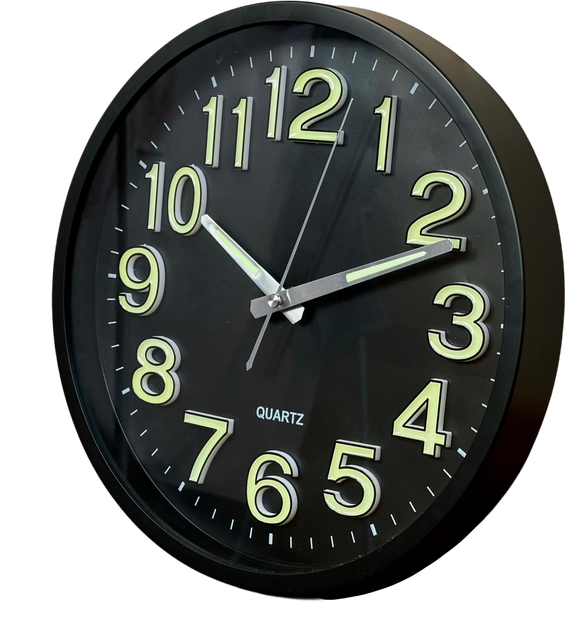 Фосфорний настінний годинник Безшумний Світиться Круглий (30 см) Timelike™ Ph-01-B чорний