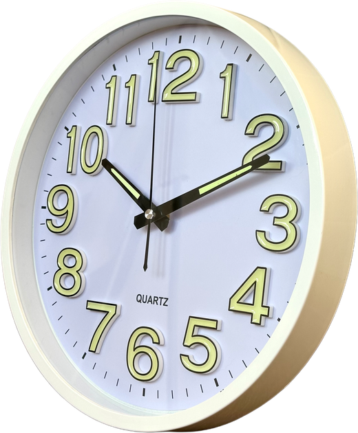 Фосфорний настінний годинник Безшумний (30 см) Світиться Ph-02-W білий