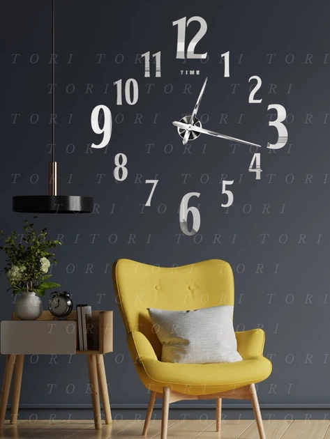 Великий настінний безкаркасний безшумний інтер'єрний 3D годинник наліпка декор для дому діаметр до 120 см сріблястий (900383
