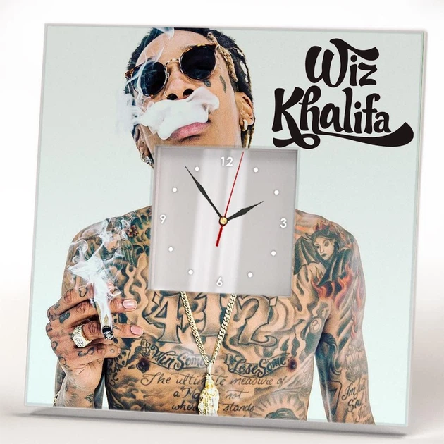 Стильний годинник "Wiz Khalifa. Віз Халіфа" подарунок для фанатів реп, хіп-хоп музики, прикраса в спальню, бар, клуб, студію