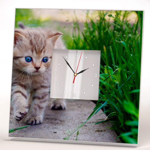 Настінний годинник "Кошеня з блакитними очима" прикраса для любителів кішок, в дитячу спальню, дачу