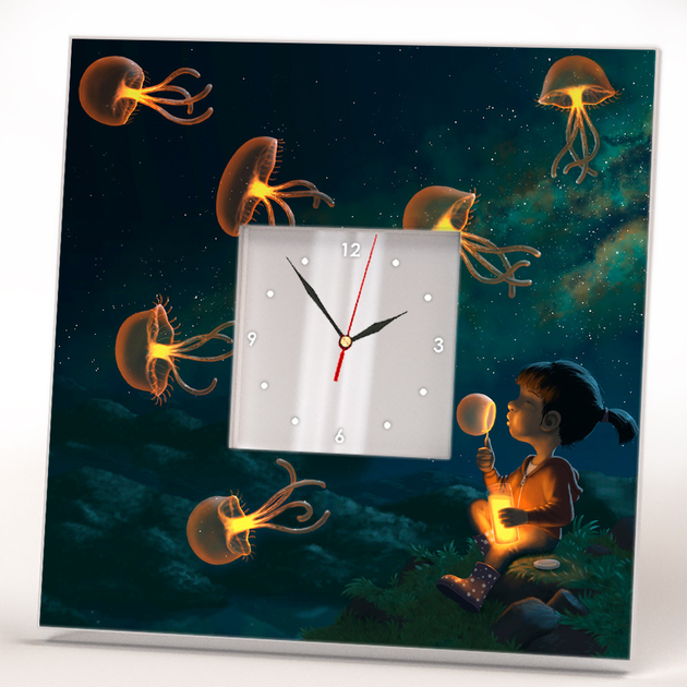 Красивий декоративний годинник для дитячої кімнати або спальні "Дівчинка видуває медуз"
