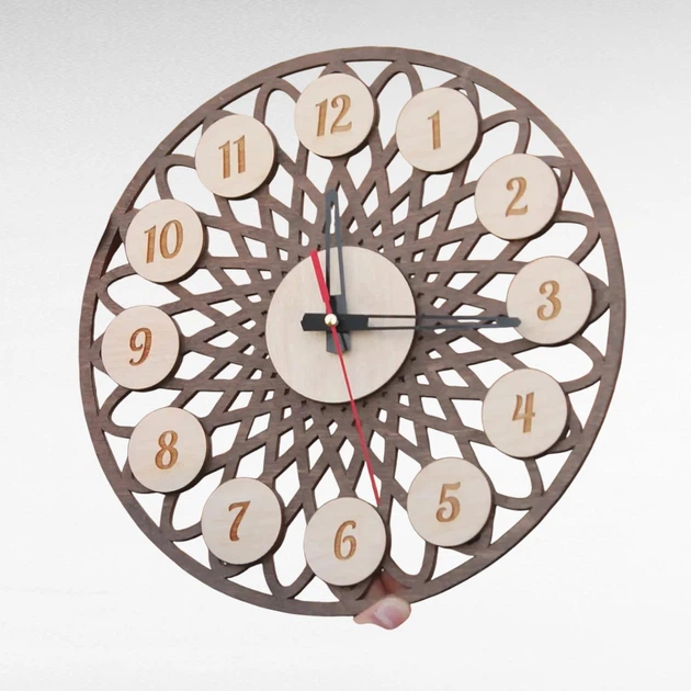 Часи настінні дерев'яні з індивідуальним дизайном (фото, гравіювання), 30 см