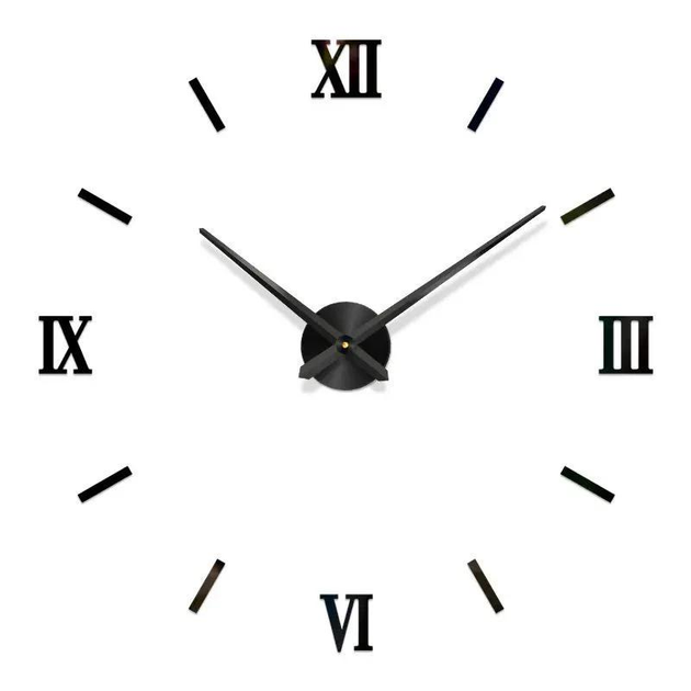 Настінний безкаркасний 3D годинник Diy Vestal великий із дзеркальним ефектом самоклейний 60-130 см Чорний
