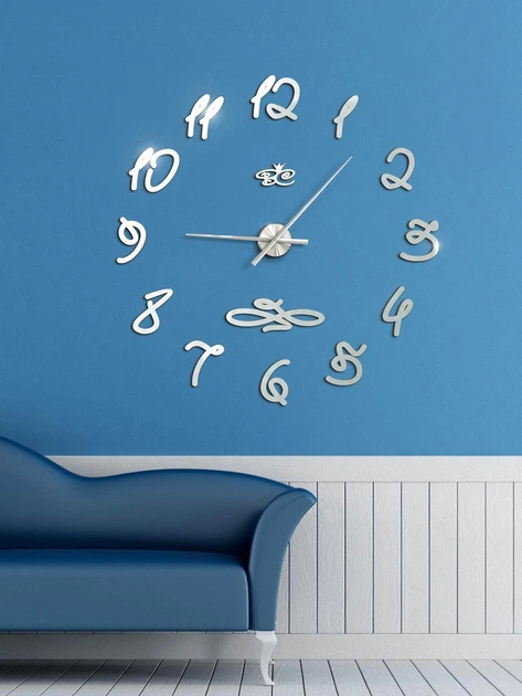 Годинник великий настінний 3D наліпка 100 см "Фрістайл" срібло