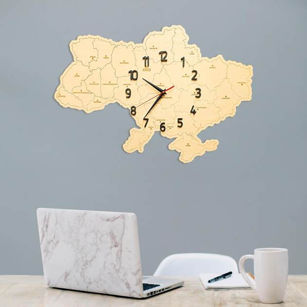Декор з Дерева на Стіну - Годинник-Карта України (01753-дер)