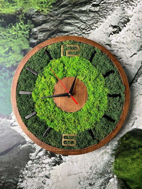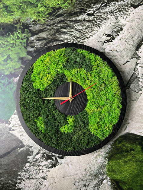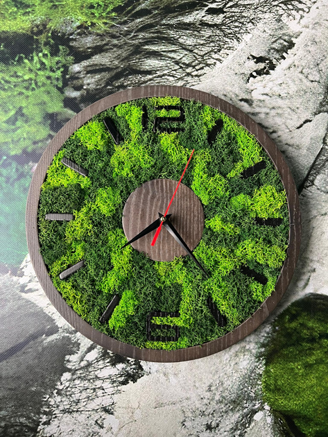 Настінний годинник з моху Дотик природи у кожній хвилині 33х33 см